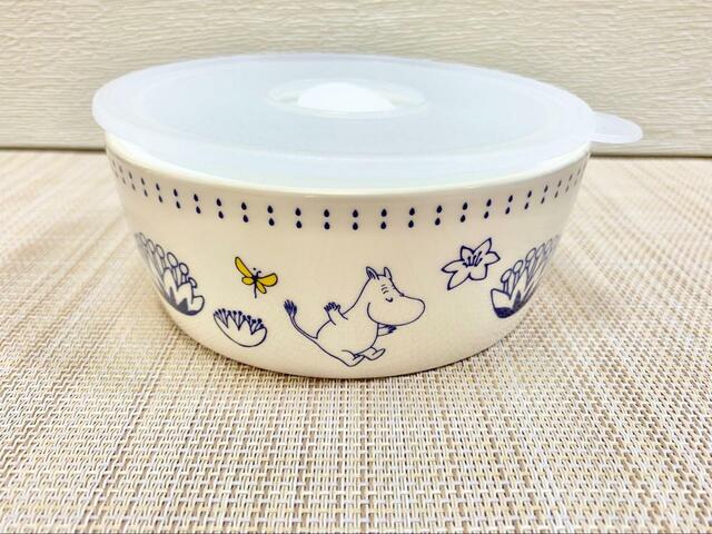 1つ目の付録は、ムーミンとスナフキン、リトルミイとスノークのおじょうさんが描かれた保存容器。サイズは口径12.5×高さ5.2(フタ含む)cmです。
