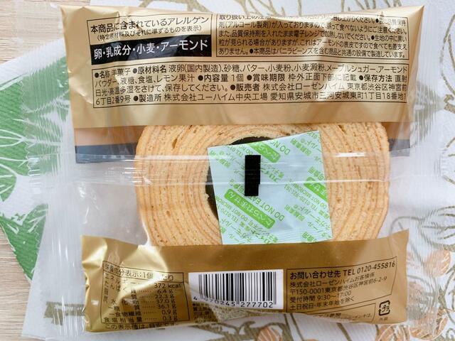 商品名の通りふわふわ感があり、原材料もシンプル。他のコンビニのバウムクーヘンより割高ですが、価格以上の美味しさです。
