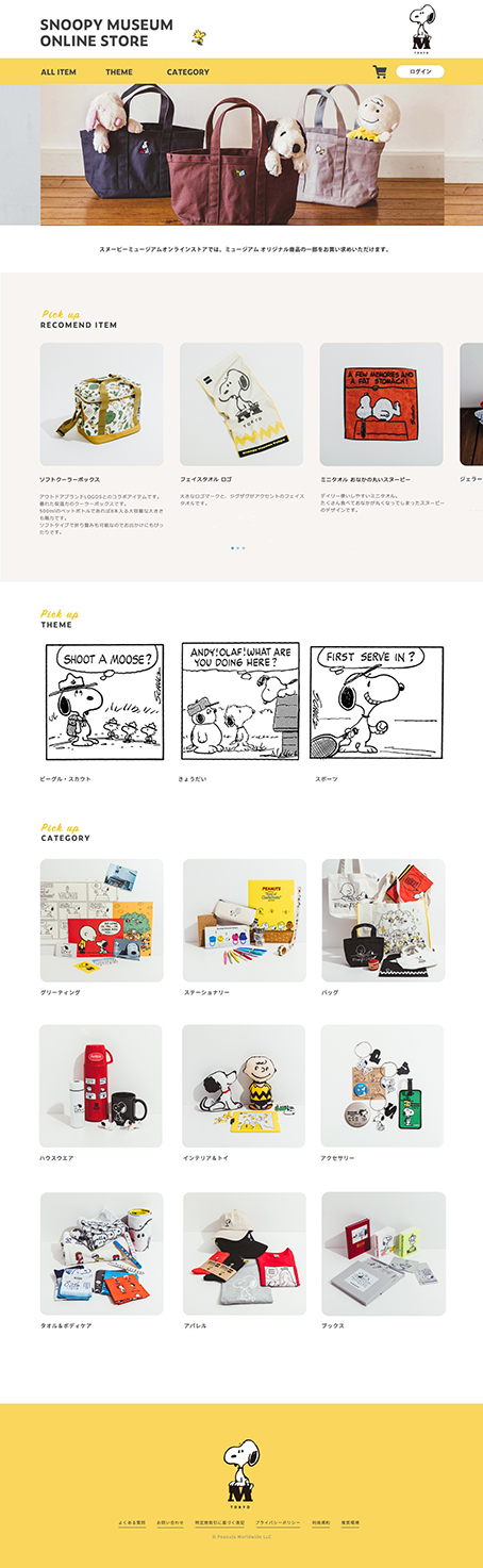 これまでの『スヌーピーミュージアム オンラインストア』は、過去に「オンラインミュージアム(有料)」を鑑賞した方のみが利用可能でしたが、リニューアル後は誰でもスヌーピーミュージアムの可愛いグッズを購入できるようになります。