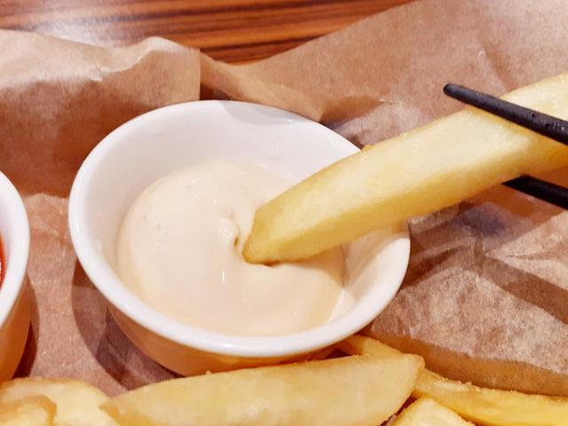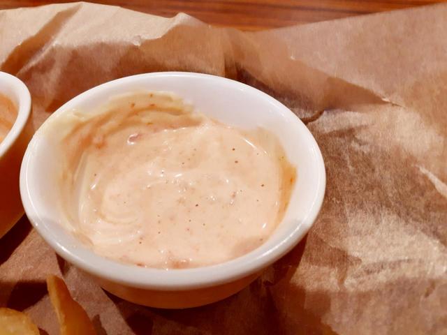 何度食べても新鮮に感動!! なにこのソース!! うますぎる!! ただのマヨネーズとは完全に別物。いや、というか、そもそもただのマヨネーズだってめちゃめちゃうまい調味料じゃないですか。フライドポテトとの相性も抜群ですし。そのマヨを差し置いてこのソースの美味さはなんなのだ。
