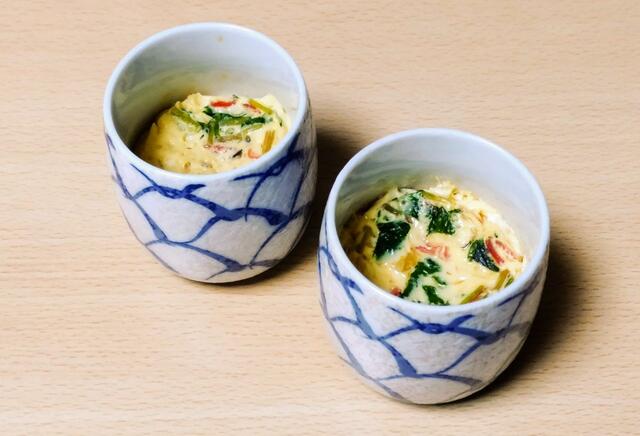 作り方は、フリーズドライの茶碗蒸しキューブを140ccの熱湯で戻したら卵1個を溶いて入れ、耐熱容器2個に移します(1袋で2食分)。後は電子レンジで加熱するだけ。ちなみにワット数が低く、調理時間が長いほうが、なめらかに仕上がります。