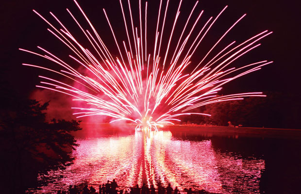 スイスの街並みを再現したテーマパークで開催。目玉の水上・水中花火ではいくつもの光の線が水面に反射する様が見られる。昼間にアトラクションで遊んでから夜に花火大会を観賞しよう。