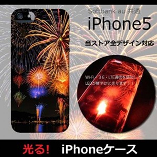 こちらのケースは背面にオシャレな花火が印刷され、夏にぴったりのデザイン。さらに、このケースは、LEDが付いており、着信・発信に合わせて光ります。