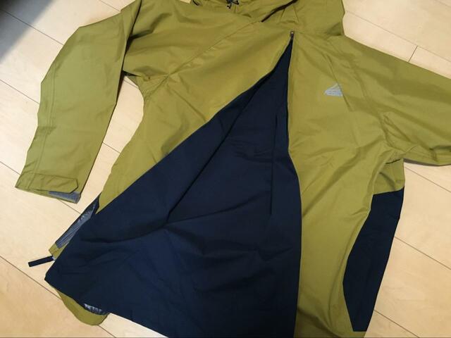 背中にファスナーがついていて、閉じれば普通のシェルジャケットとして着用でき、開ければリュックを収めることができます。
