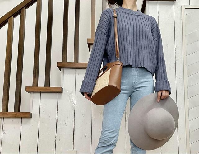シンプルな形だからこそ、小物で遊べるのがリブニットのいいところ!