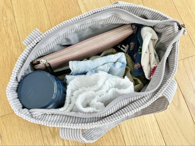 小ぶりなサイズながらたくさん入るので、子どもの着替えから母子手帳まで、お出かけに必要な荷物を入れられます。
