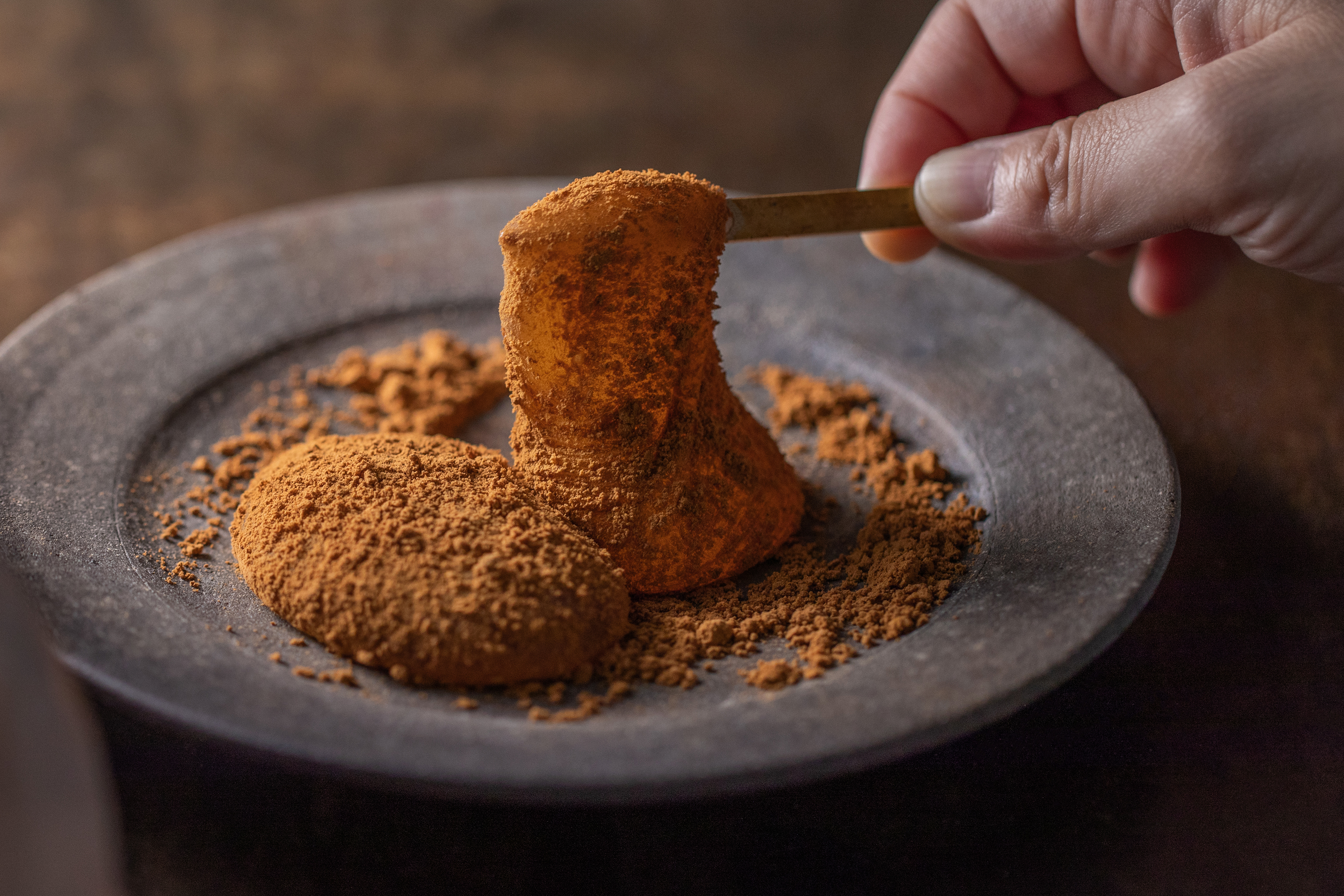 収穫したさつまいもを、でんぷんが糖に変換されて甘みが増した“蜜芋”と呼ばれる状態になるまで、2カ月間貯蔵して甘みを最大限に高める。そしてペースト状に加工する前にガスオーブンで焼くことで、蒸したさつまいもペーストでは味わえない香ばしさを引き出した。