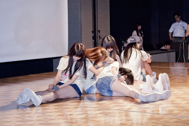 続いて「この曲が最後になります!」と言って(ここでアイドルライブお約束の「えーーー!?」の声は上がりませんでしたが・笑)、tengal6名義時代のナンバー『プチャヘンザ!』へ。ちなみに、タイトルの意味は"put your hands up"で、終盤にはメンバーがステージから降りていって、前方に陣取っていたオーディエンスにハイタッチ! 後で聞いたところによると、ステージから降りることは前もって考えていたわけではなく、メンバーの誰からともなく発生した突発的なアクションだったとか。多くの場数を踏んできた彼女たちならではのアドリブの利いたパフォーマンスでした。