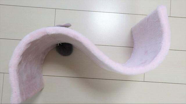 「ニャンてS字な遊び場」はピンク色のもこもこ素材が可愛い商品です。さっそく開封してチェックしてみましょう。