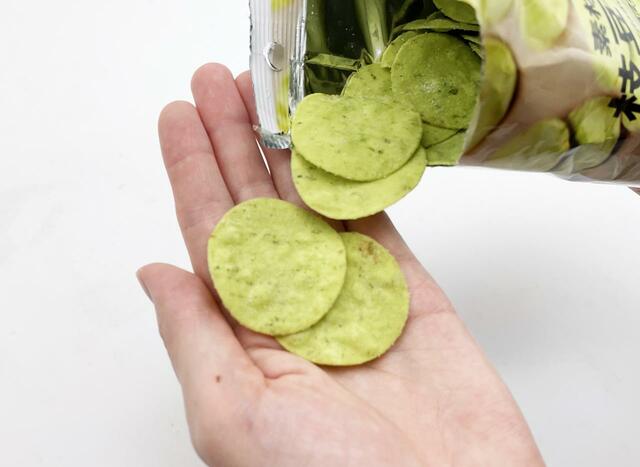 この食感と塩味が、えだ豆のコク深い味わいを押し上げている印象で、一口食べると、「もう1枚、また1枚」と手が伸びてしまうようなヤミツキ感があるように思いました。