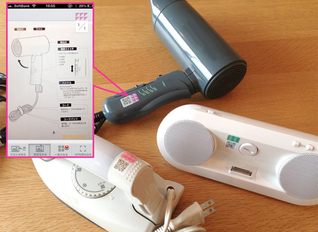 そんなときは、説明書をカメラで撮っておいて、家電製品とリンクさせておくと便利です。説明書を探す手間が省けて◎。