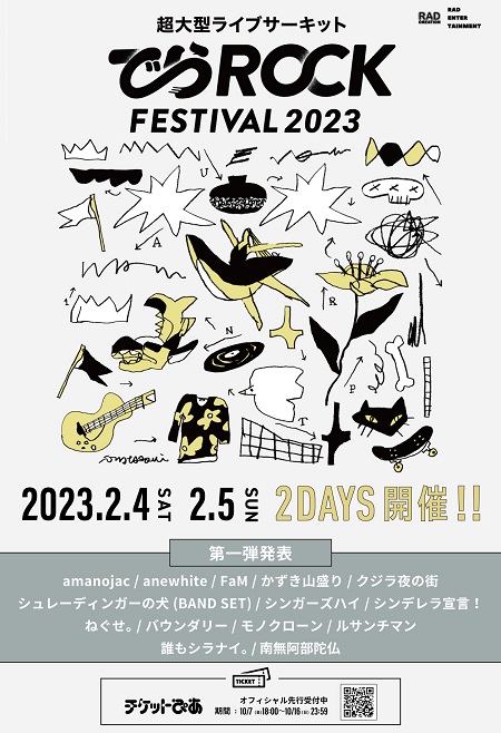2023年2月4日(土)、2月5日(日)名古屋市栄、新栄、大須地区15会場以上で開催される冬のサーキットフェスRAD CREATION & RAD ENTERTAINMENT presents "でらロックフェスティバル 2023の第一弾アーティストが発表された。