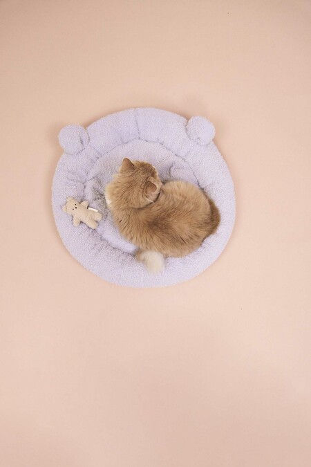 ベアをモチーフにデザインした犬猫兼用のシンプルなベッド。ふんわりと上質な'ジェラート'素材を使用し、中にはふわふわ、もちもちな綿を使用し寝心地も抜群。インテリアにもなじみやすいシンプルなデザインです。色は淡いブルーとやさしいブラウンの2色展開。