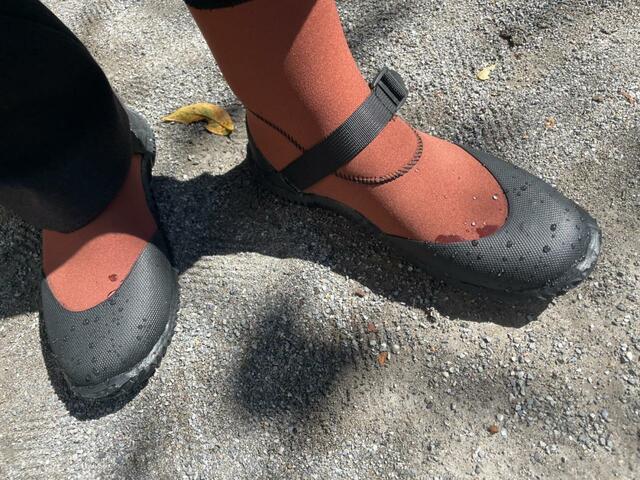 しかし実際に中まで水が浸透することは無く、多少の雨や水場であれば問題無く履けるようです。ガーデニングや、軽めの川遊びに使ってみたいですね。