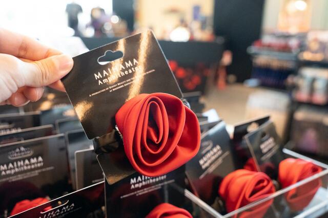 バラの花びらが大きく飾られ、動くたびに花びらが揺れます。