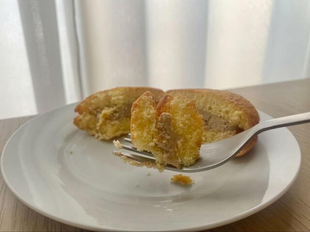 焼き芋ペースト入りで香ばしく焼き上げられた生地には、カラメルリンゴペーストが隠し味で入っているそう。バターとはちみつの風味の後にさつまいもの風味が上品に香ります。