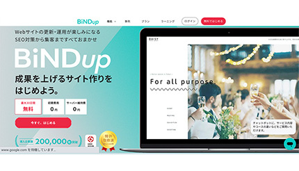 「BiNDup」はウェブライフが運営する国内で誕生したホームページ作成ツールだ。搭載機能が充実していることもあり現在は20万社もの企業がBiNDupを導入している。