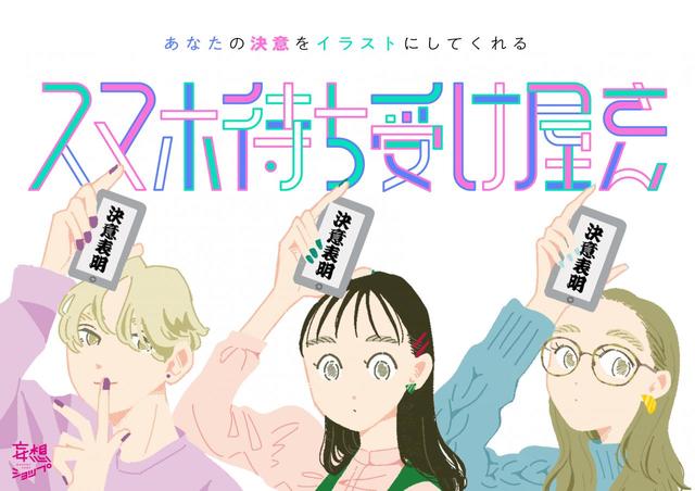 決意があるのになかなか実行できない人のために、総勢11名の人気作家・イラストレーターから1名を選び、マイルールなどの「決意表明」と「似顔絵(似合わせイラスト)」をスマホの待ち受け画面に設定できる壁紙を作るショップとなっている。