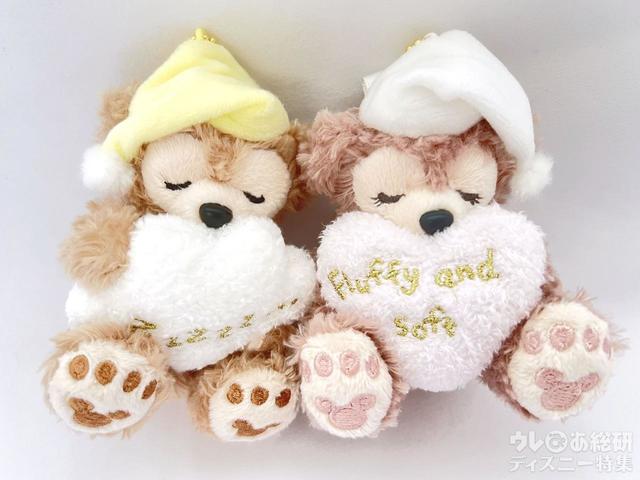 ダッフィー、シェリーメイ、ジェラトーニ、ステラ・ルーがおねんねしているぬいぐるみバッジも新発売!