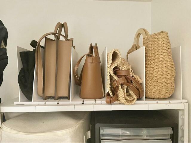 仕切ることで一つひとつのバッグを立てて収納できるため、取り出す際もスムーズです。