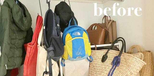 夏用に購入したビッグサイズのバッグがあったのですが、薄くて自立しないため、S字フックに引っ掛けて収納していたのですが、少し邪魔に感じていました。