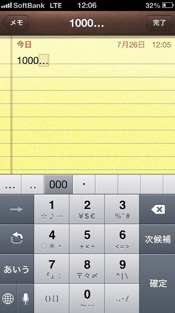 1000を入力する時には「1」と「0の上フリック」を組み合わせれば効率よく入力ができてしまいます!