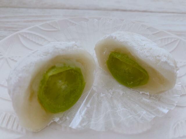 形が崩れそうなほど柔らかいお餅と、シャインマスカットの甘さを引き立たせる白こしあんの控えめな甘さが良いバランスです。