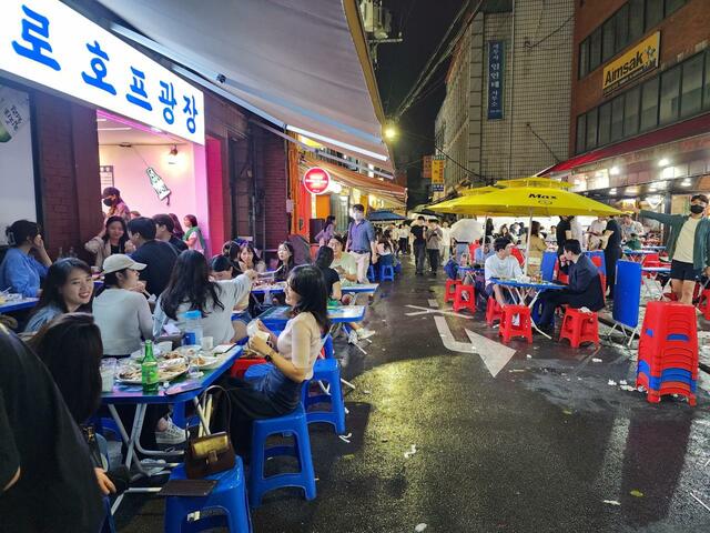 ソウルでは寒さが本格化する11月の初めくらいまで、店の外で飲み食いする人の姿を見かける。