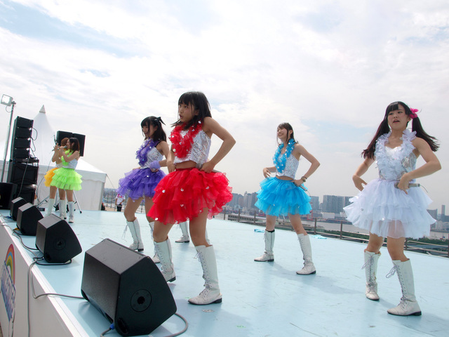 爆発的なパフォーマンスに、青空が似合う!青空のステージの上で脚立に乗っちゃうから、さらに天使度が高まる!美海ちゃん、ガンガン水かけ、よろしくお願いします!!