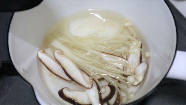 凍ったまま、だしと共に鍋に入れると、きのこからもいいだしが出ます。