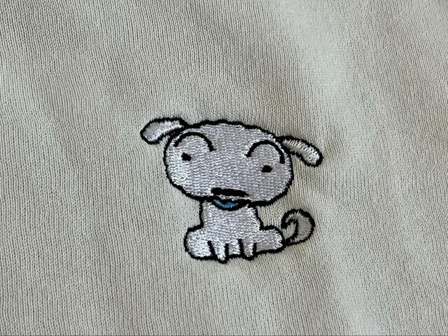 左胸の部分には、約4cm×4.5cmの大きさのシロがワンポイントで刺しゅうされており、目に留まります。