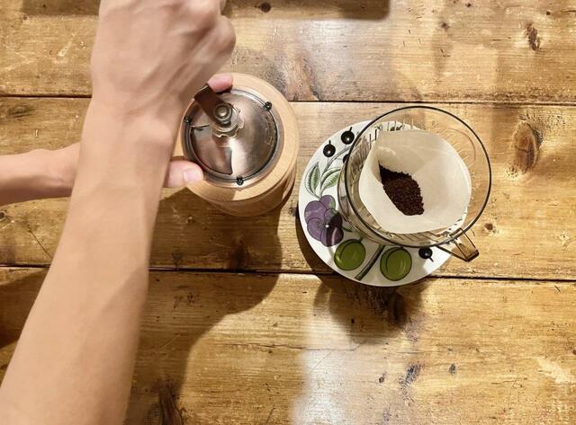 コーヒー豆をゴリゴリと挽く音や感覚、そして豆の香ばしい香り。