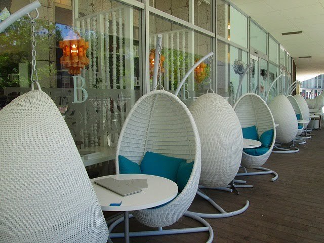 テラス席にはゆりかごソファが設置させれていて、海風にそよがれながらつい長居したくなってしまう、とても居心地のよいお店。