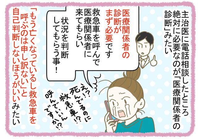 医療の素人(警察含む)の判断では、明らかな事件でもない限り「死亡確認」にはならないようなのです。