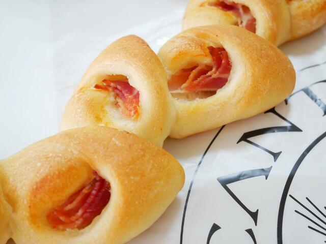 シンプルなフランスパン生地に、塩気が強めのベーコンが入っています。