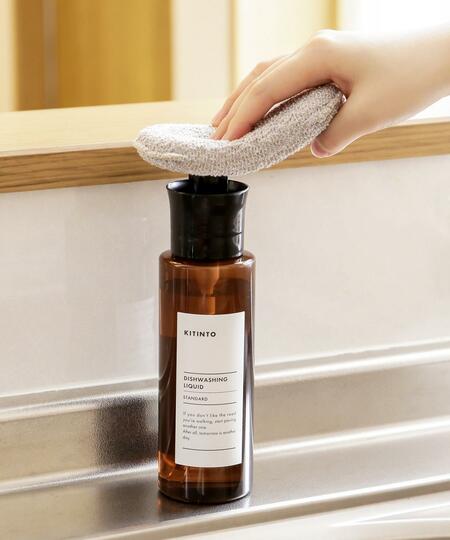 通常、スポンジに洗剤をつけるときには片手でボトルを持ったり、傾けたりして洗剤をスポンジに取りますが、このボトルならその必要はありません。SNSでは「洗い物が好きになった」という声もあるくらいファンの多いグッズです。