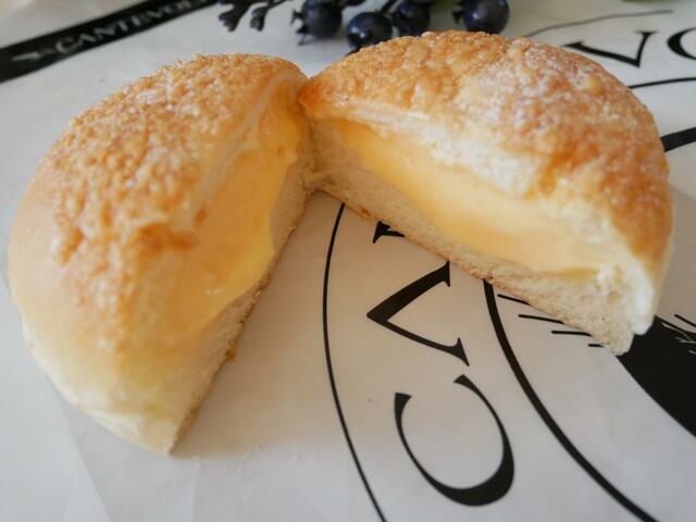 一般的なクリームパンは、ねっとりと粘り気が強めですが、これはとろっとしていて水気が強め。