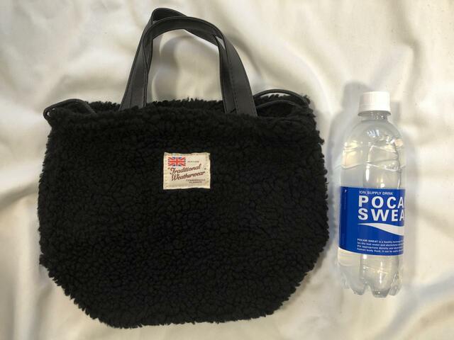 次に、バッグのサイズ感がわかるように、隣に500mlのペットボトルを並べてみました。