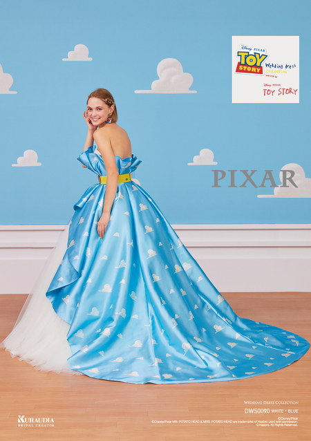 クラウディアより、『トイ・ストーリー』らしさたっぷりのオリジナルプリントがあしらわれた、ポップでキュートな新作ウェディングドレスが登場。