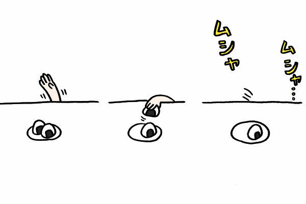 要するに食べている姿を見られなければよいのです。テーブルの下に身を隠し、おにぎりを掴む時だけ手を出して、あとは見えない場所で食べるようにしましょう。いくら食べてもおにぎりが減らない場合、誰かが面白がって次々に置いている可能性があります。