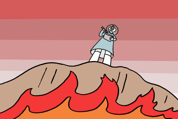 この際、村を焼き払ってしまいましょう。一人で弁当を食べるというもの悲しい立ち姿も、焼き払った村の炎に照らされながらであれば、たくましいことこの上ありません。