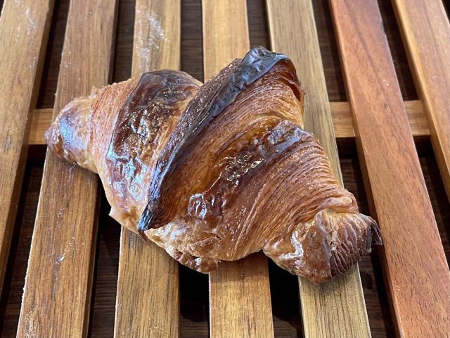フランス産発酵バターを使ったパン生地を16層に重ねたものを丁寧に焼き上げている。ひと口齧った瞬間、バターの香りがはじけちり、香ばしさと甘い味わいが舌をおそった。サクサク感あふれる秀作だった。