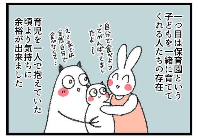 一緒に子供を育ててくれる保育園の存在で私の気持ちに余裕が生まれ、また子供の頻繁な夜泣きがなくなったことで体力もかなり回復。