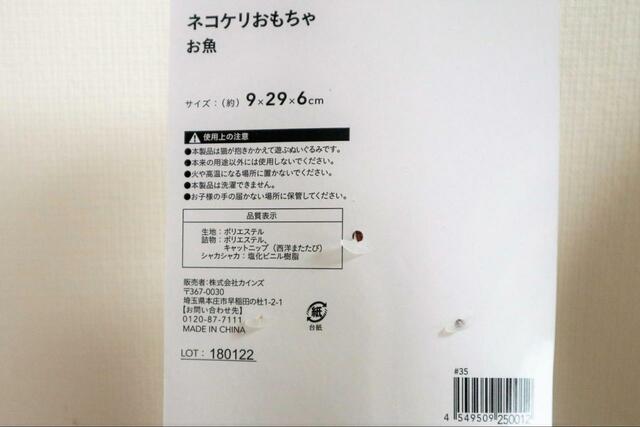 カインズのオリジナルペット商品「ネコケリおもちゃ(お魚)」です。