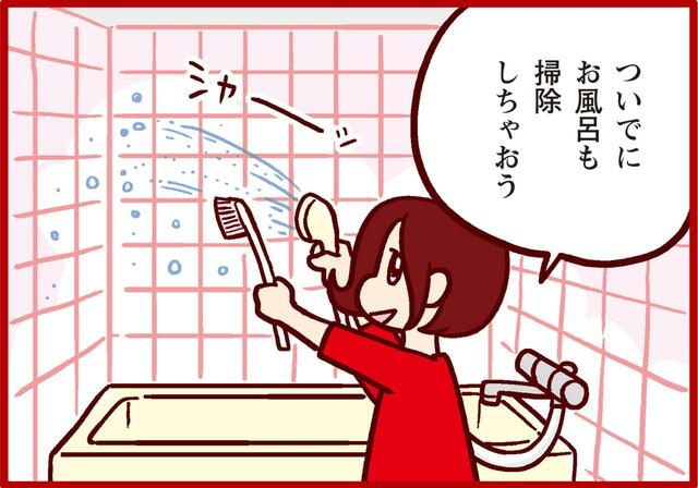 なんの予定もない週末の朝、思いつきでお風呂掃除を始めたさるころ…。あるタイミングで、怒った様子のノダDがやってきました。