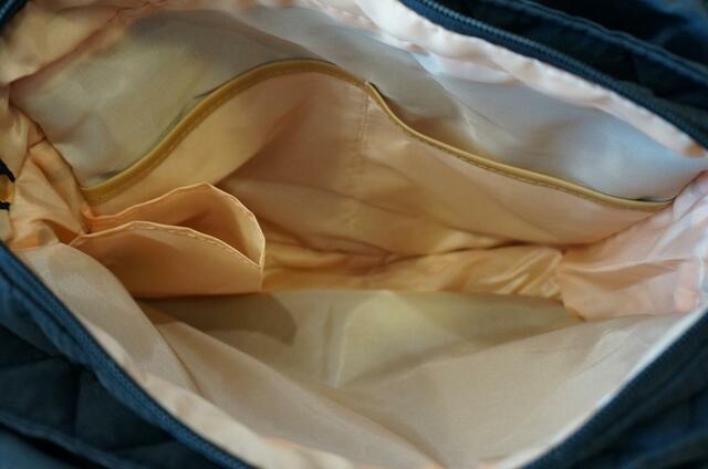 メイン収納にはベージュの裏地を使用。中身が見やすく、欲しいものをすぐに取り出せます。
