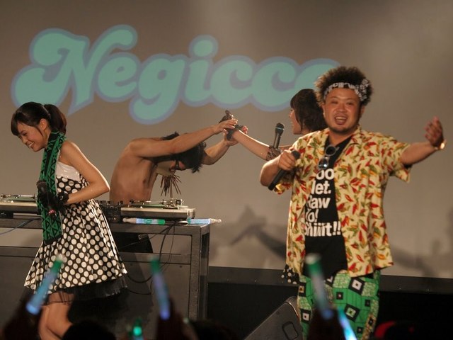 さらにさらに、目玉その2として、個人的にアルバムベスト曲な『ナターシア』でコラボした「サイプレス上野とロベルト吉野」の二人が参戦!自腹をかっさばいたネギライトを八つ墓村スタイルで装着して登場したところから会場は大盛り上がり!Negiccoの3人も「よっしゃっしゃー!」連呼でかわいかったデス(笑)。