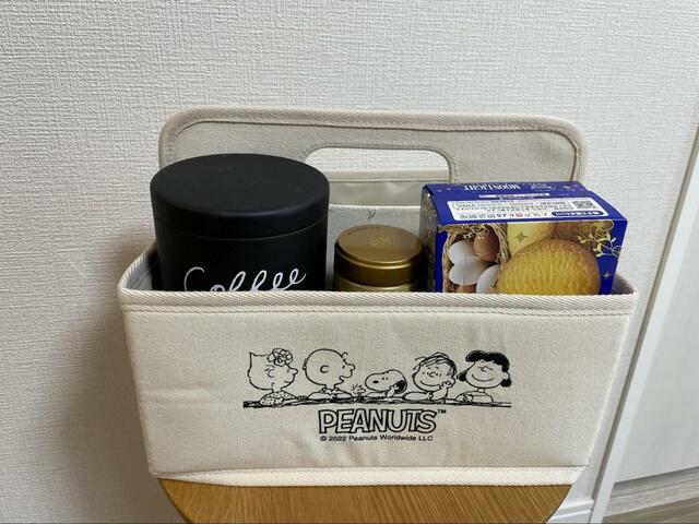 お菓子やコーヒーキャニスターを入れて、おうちカフェに必要なものを一箇所に集約させることもできます。急な来客の際も、一箇所にまとめているとサッと取り出せて便利です。