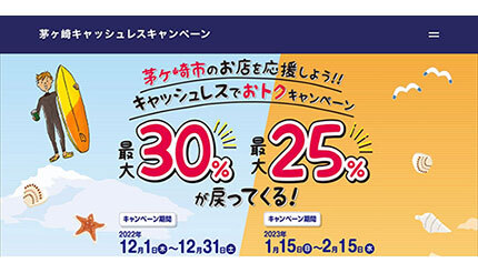「買って♪使って♪茅ヶ崎市のお店を応援しよう!!キャッシュレスでおトクキャンペーン 第1期」は12月1日~31日。他にも多くの自治体で20~30%還元キャンペーンが実施中だ