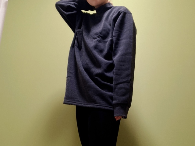裏起毛で暖かいハイネックです。インナーとして着れば首元まで暖かく覆ってくれます。